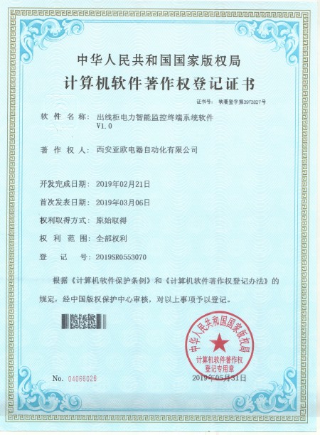- 關(guān)于我們 - 資質(zhì)榮譽 - 出線柜電力智能監(jiān)控終端系統(tǒng)軟件