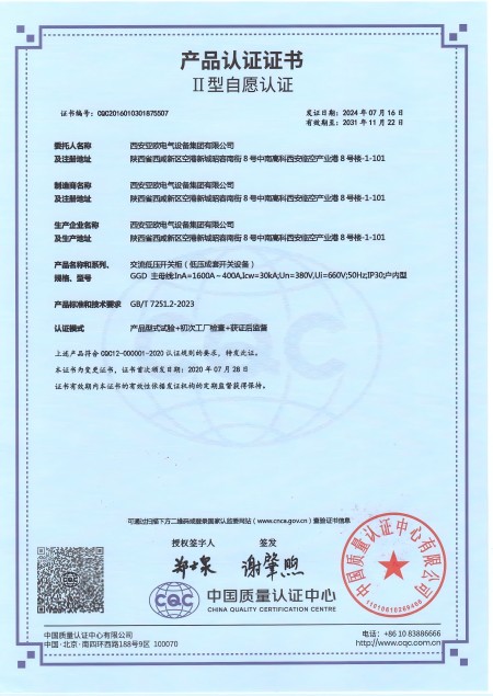 - 關(guān)于我們 - 資質(zhì)榮譽 - 交流低壓開關(guān)柜(GGD)資質(zhì)
