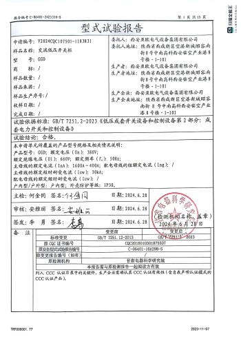 交流低壓開關(guān)柜(GGD)資質(zhì):